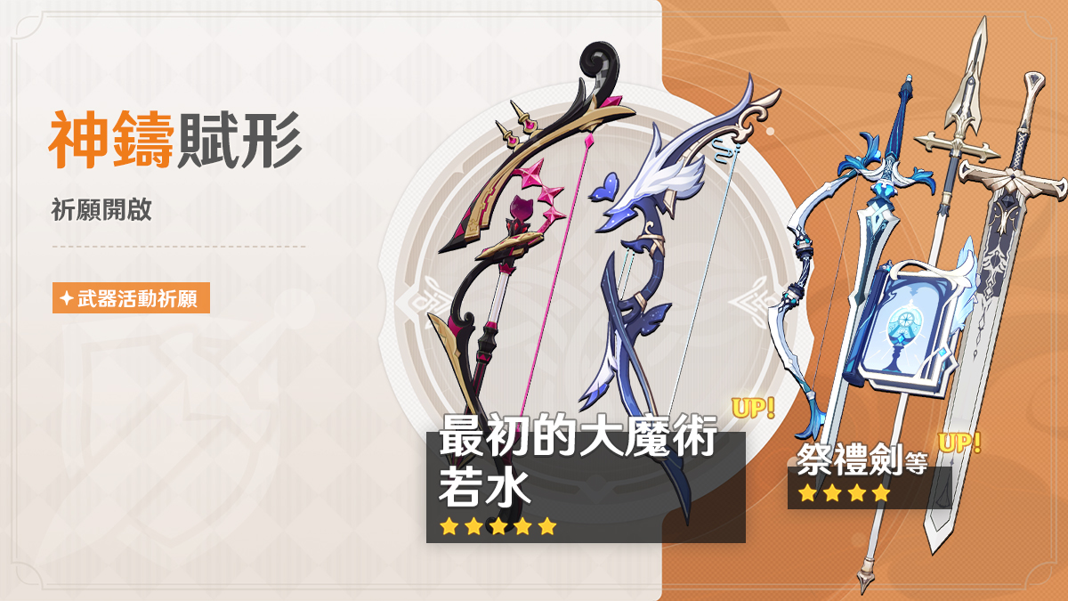 「神鑄賦形」祈願:「弓·最初的大魔術」、「弓·若水」機率UP!