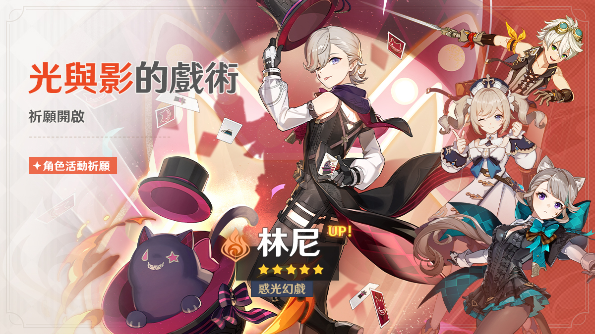 「光與影的戲術」祈願:「惑光幻戲·林尼(火)」機率UP!