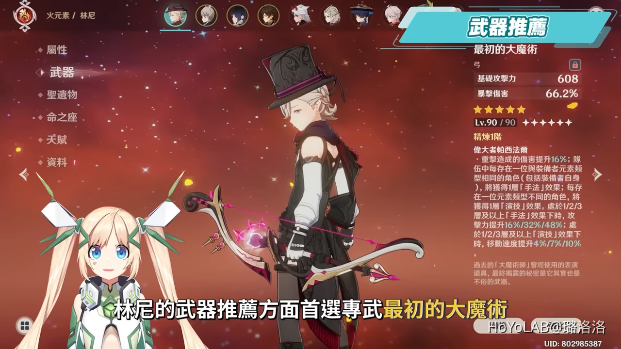 標籤:4.0 Genshin Impact RURORO 原神 命座 天賦 抽取建議 攻略 林尼 武器 璐洛洛 畢業面板 站場C 純火隊 聖遺物 角色 角色分析 輸出手法 配置