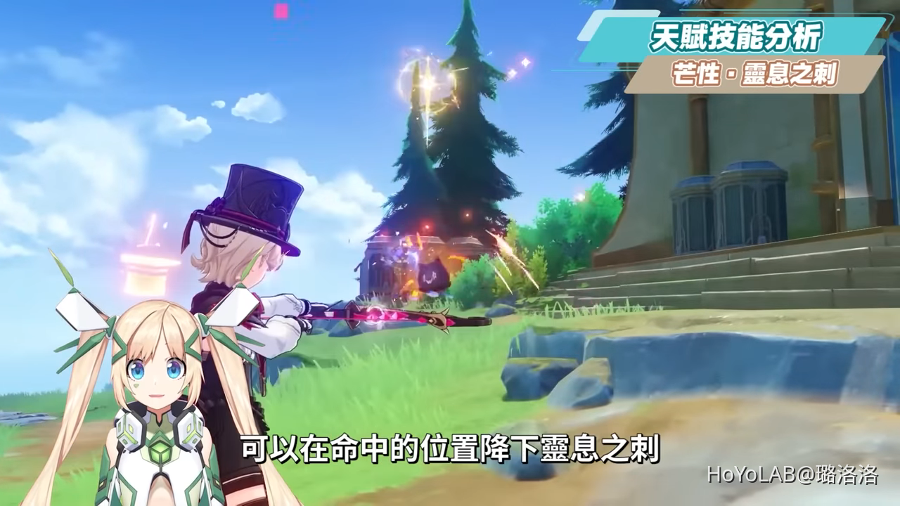 林尼的二段蓄力具備芒性的始基力,二段蓄力的隱具魔術箭可以在命中的位置降下靈息之刺,造成具有芒性的火元素傷害,冷卻間隔時間為6秒。搭配妹妹琳妮特的荒性,可以在楓丹區域探索時具有一荒一芒的角色進行探索與解謎。