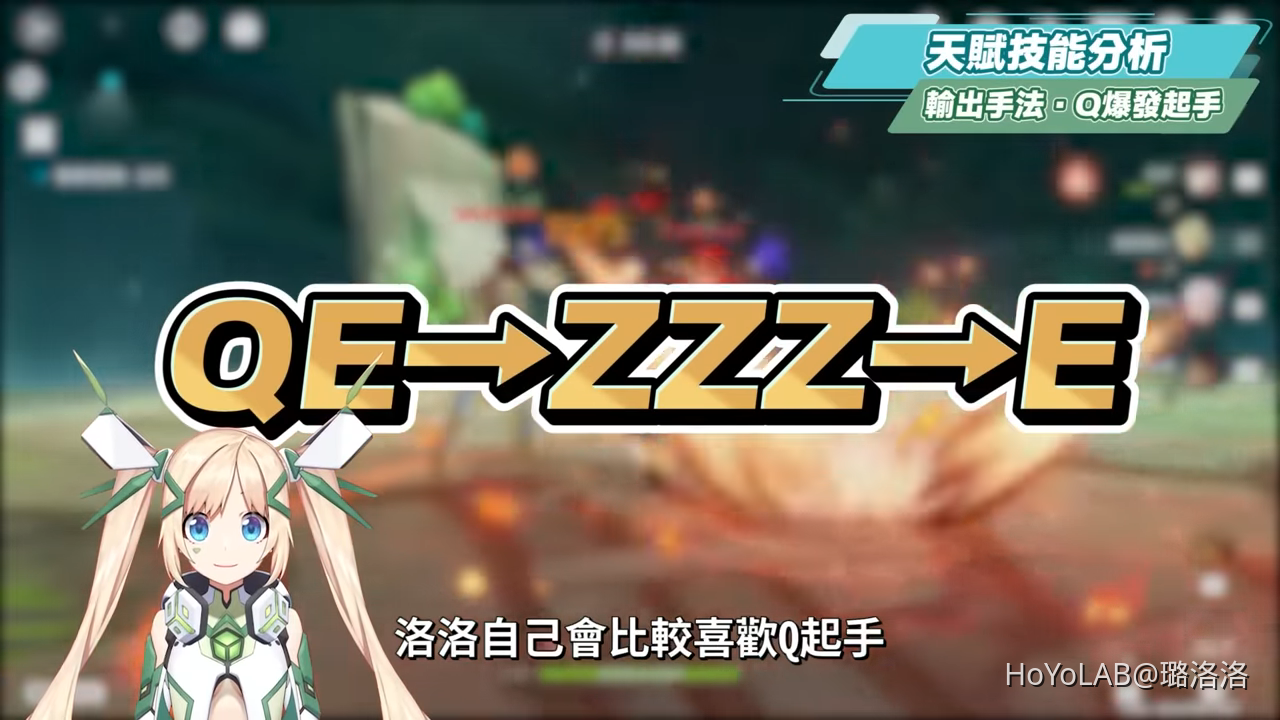 若是Q元素爆發起手,前面同樣先放持續治療角色提供持續回血環境,接著開Q後點按E解除Q狀態,再站場二段蓄力2~3次,若是搭配班尼特的話,大約蓄力射擊到第3次後領域就會結束,接著開E戰技收尾。若是在深境螺旋或是副本內實戰的話,洛洛自己會比較喜歡Q起手,這樣QEA三招技能都能吃到班尼特的加傷。
