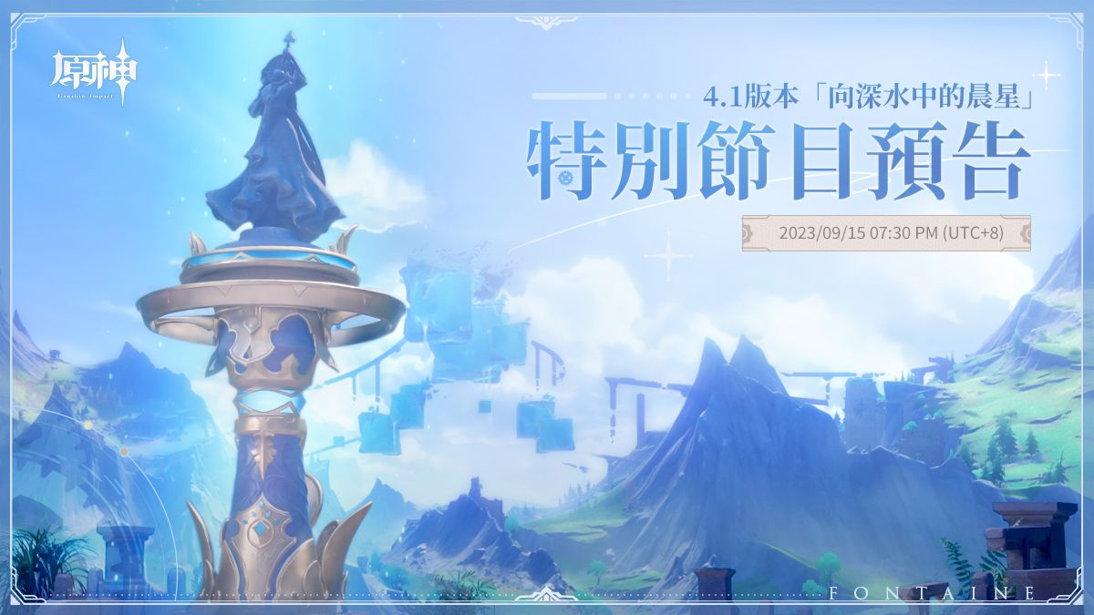 《原神》新版本特別節目於2023/9/15 19:30(UTC+8)在官方Twitch頻道首播>>> https://www.twitch.tv/genshinimpactofficial/schedule