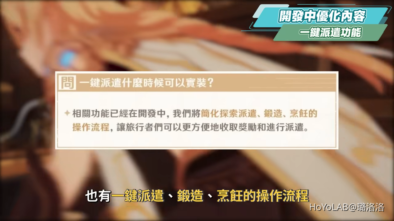 其他也在優化排程中的項目也有一鍵派遣、鍛造、烹飪的操作流程。