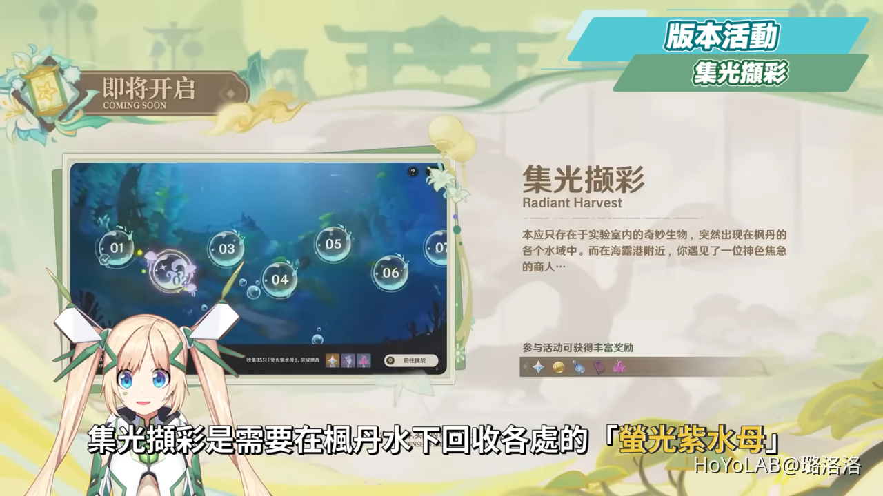 集光擷彩是需要在楓丹水下回收各處的「螢光紫水母」,消除此處的生態隱患並獲得獎勵。