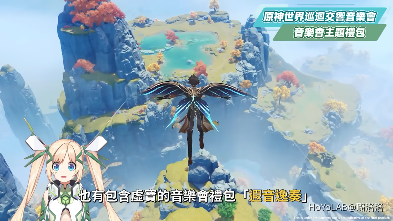 除了主題週邊,也有包含虛寶的音樂會禮包「遐音逸奏」,內容物可以看到一些特殊的塵歌壺家具、名片,以及限定的風之翼可以收藏,前瞻直播中提到禮包會在遊戲內上架,相關的上架時間需要再等候官方公布。