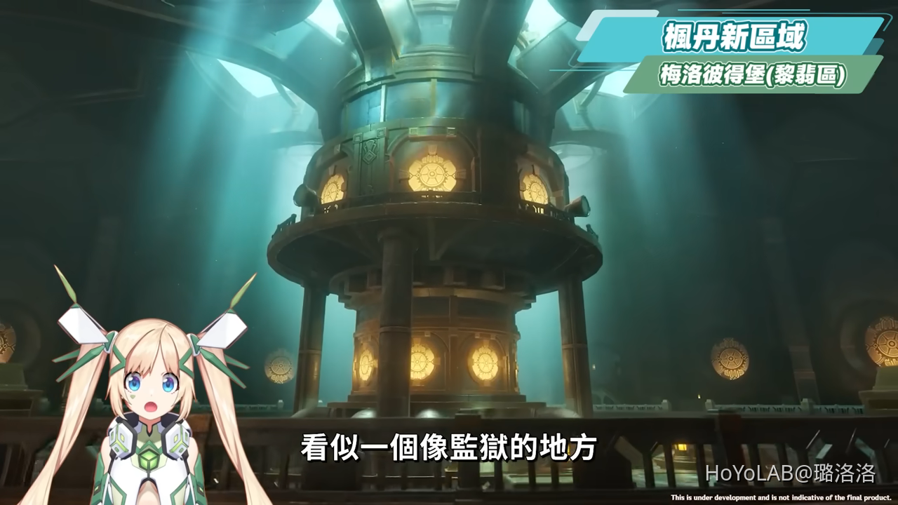 梅洛彼得堡是楓丹4.1版本新出的區域之一,這裡其實並不受制於楓丹的司法體系,而是以一種自治的方式在管理,雖然犯人在受到懲治後會被流放到此處,看似一個像監獄的地方,卻是來自各處的流放者聚集的地方,在這邊他們可以透過參加勞作來換取生活的物資。而梅洛彼得堡也是一處位於水下的監獄,這裡的建設大多都是以蒸汽管道和齒輪為主,整體的感覺帶有莊嚴且濃厚的工業風與蒸氣龐克感,採用多種金屬管線並再搭配多種排列組合呈現。在監獄的下方則是流放者們勞作的工廠,在這邊可以看到許多環形軌道結構,有許多發條機關的流水製造線。讓旅行者可以從重複的裝置藝術中體驗到繁而不亂的設計。