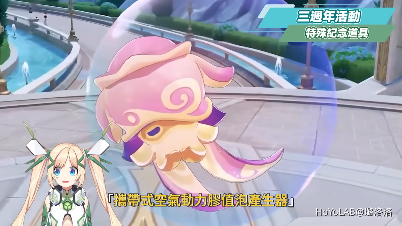 此外在郵件中還有2個特殊紀念道具,一個是可以發射泡泡的「攜帶式空氣動力膠值泡產生器」以及一個新的隨身章魚寵物「柔柔小章」。