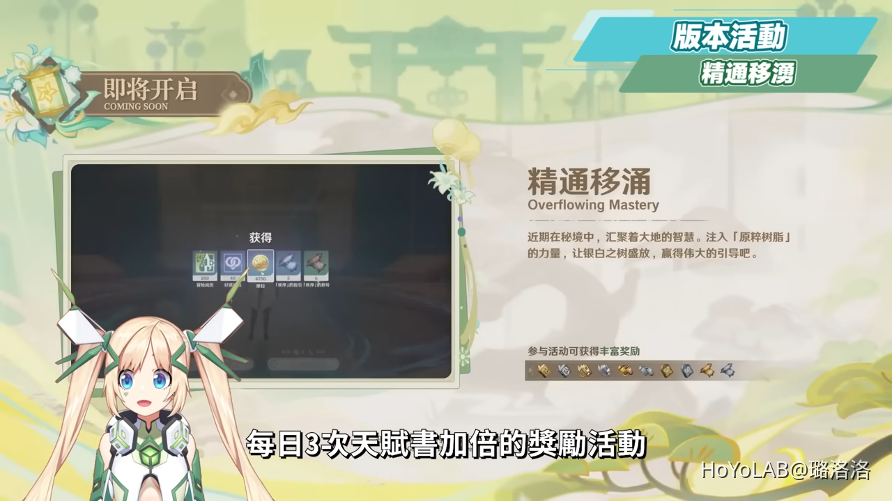老活動「精通移湧」也會在4.1版本實裝,每日3次天賦書加倍的獎勵活動。