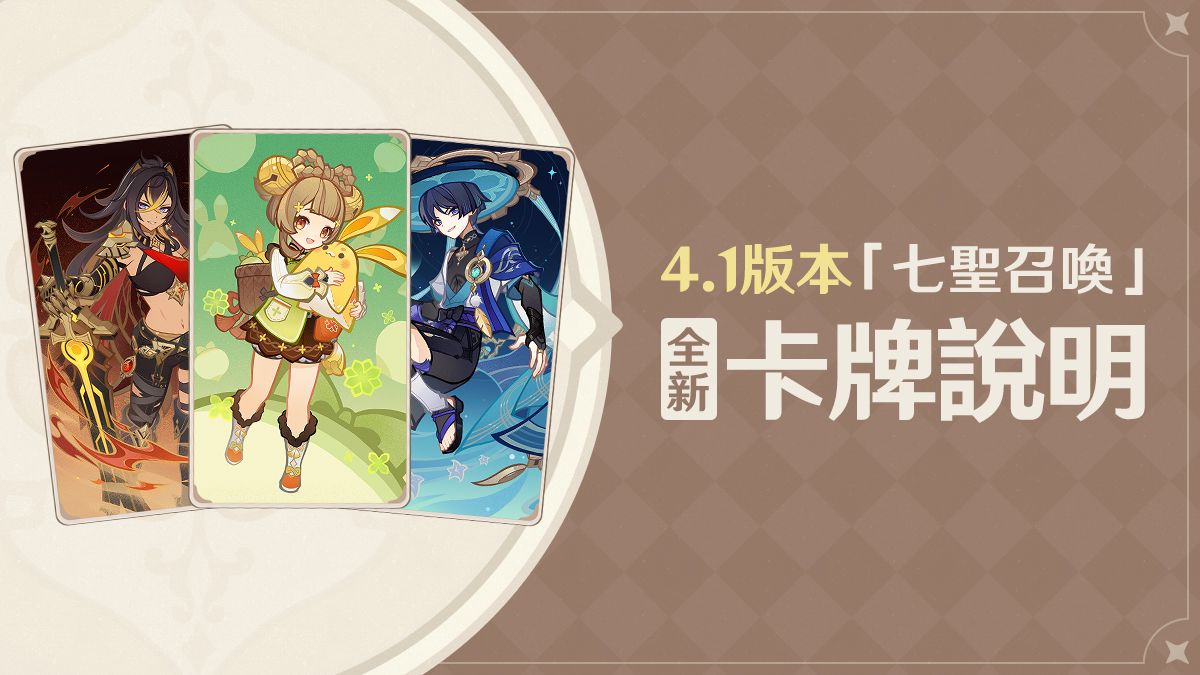 旅行者們好呀!4.1版本更新後,「七聖召喚」玩法將新增角色牌「迪希雅」、「流浪者」、「瑤瑤」和對應的天賦牌,還有6張新的行動牌,一起來看看吧~