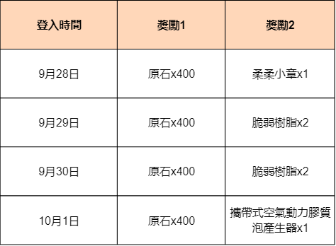 活動期間,登入遊戲即可領取原石、脆弱樹脂、小道具等獎勵!