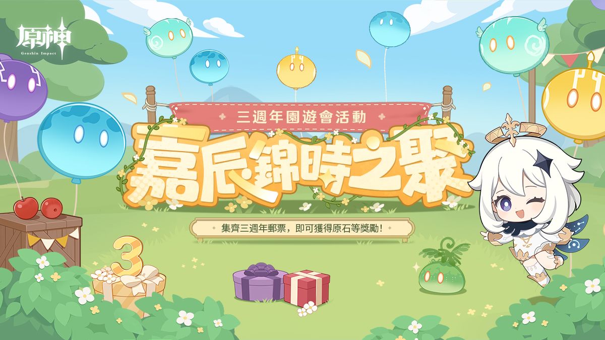 嘉辰錦時,好友歡聚,快跟隨派蒙一起來幫忙準備園遊會吧!完成攤位上的小遊戲,還可以集齊週年郵票並獲得原石等獎勵哦!