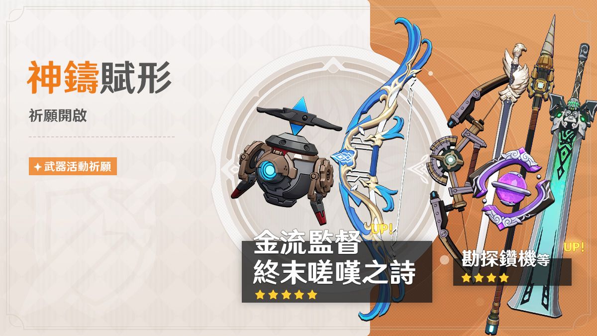 「神鑄賦形」祈願:「法器·金流監督」、「弓·終末嗟嘆之詩」機率UP!