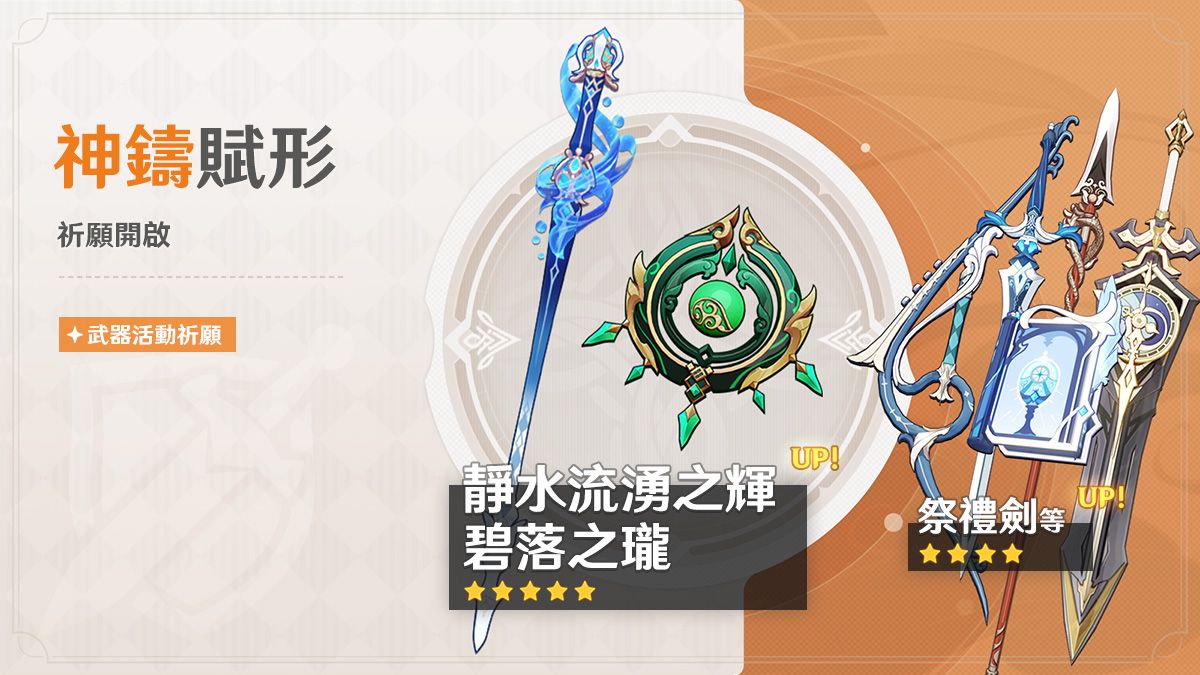 「神鑄賦形」祈願:「單手劍·靜水流湧之輝」、「法器·碧落之瓏」機率UP!