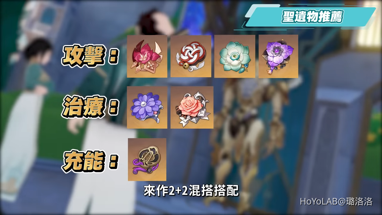 夏洛蒂的聖遺物推薦方面有很多,主要可以從攻擊、治療、充能三種方向來作2+2混搭搭配,