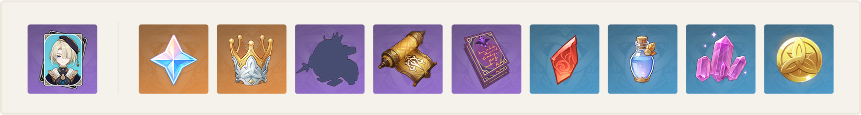 ● 完成各個玩法可獲得「特爾克西徽章」。收集指定數量的「特爾克西徽章」可邀請「潛懷遐夢·菲米尼(冰)」,同時還可以獲得原石、智識之冕、大英雄的經驗、角色天賦素材、精鍛用魔礦、摩拉等獎勵。