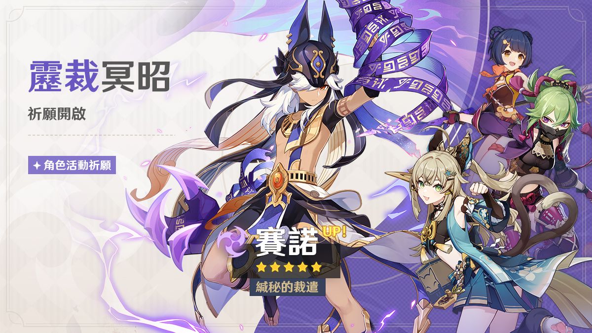 ● 活動期間,限定五星角色「緘秘的裁遣·賽諾(雷)」的祈願抽取機率將大幅提升!