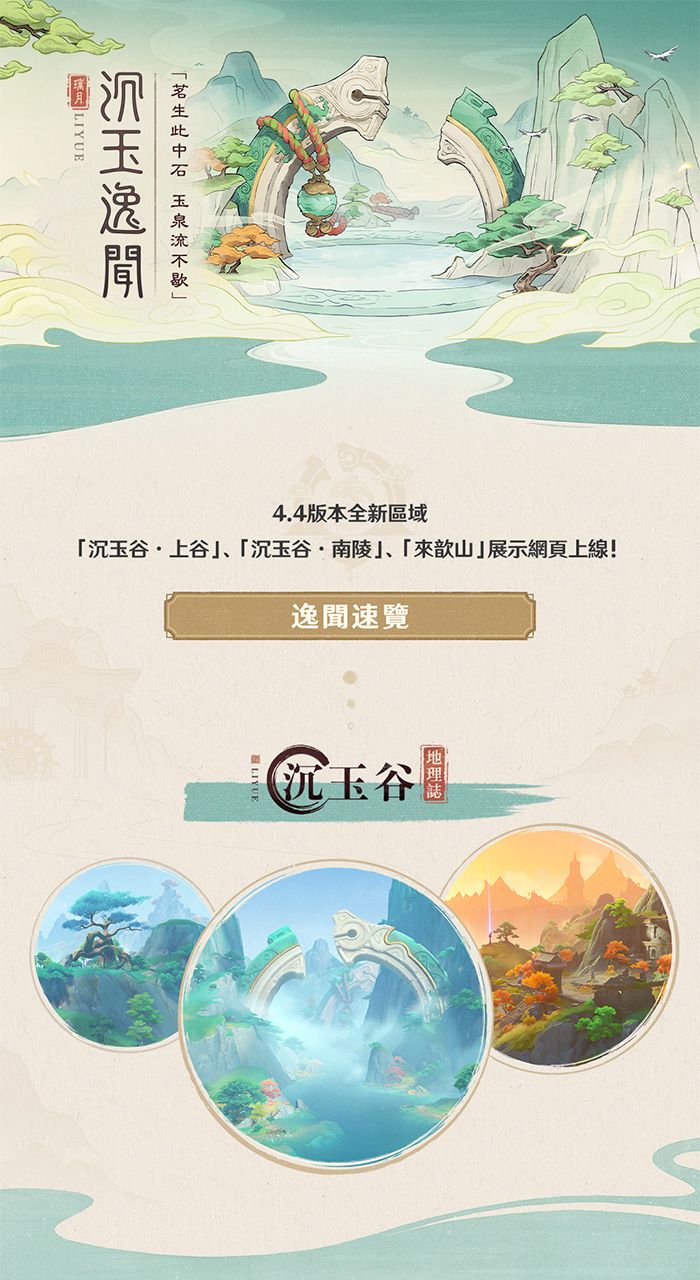 旅行者好呀!璃月地區將在4.4版本更新後開放全新區域「沉玉谷·上谷」、「沉玉谷·南陵」和「來歆山」,瀏覽本期沉玉逸聞,一起來看看新區域有哪些特點吧!