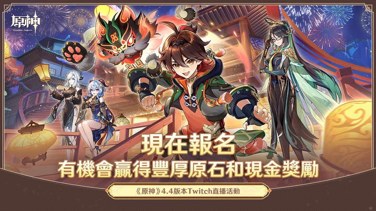 《原神》4.4版本「彩鷂櫛春風」即將更新,Twitch直播活動現已開始報名,完成觀看實況或實況開播任務,即可贏取豐厚原石獎勵!還有現金獎勵等你來挑戰呦~