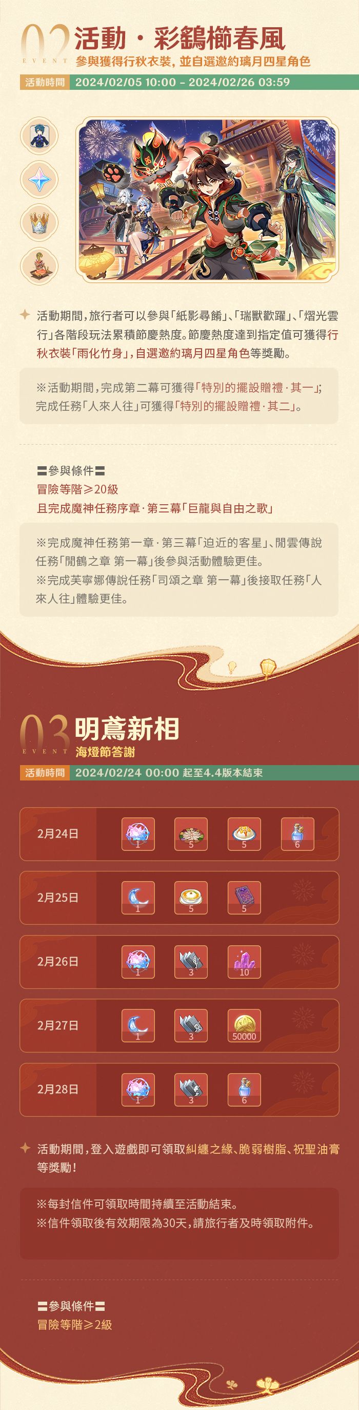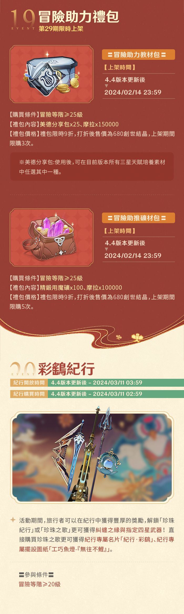 標籤:4.4 Genshin Impact 七聖召喚 原神 奇境謎丘探幽行! 富貴登門 彩鷂櫛春風 明鳶新相 有朋自遠方來 活動 活動快報 精通移湧 遊戲官方公告 鬥勝爭馳