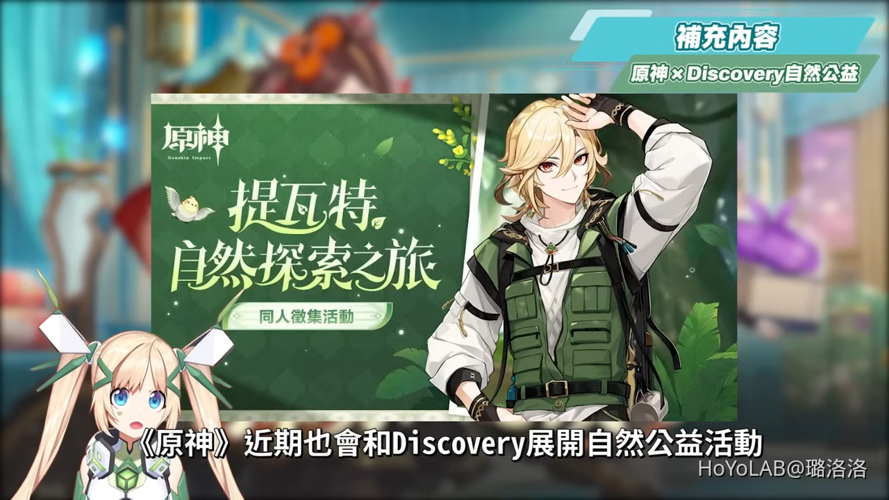 作為國際知名的遊戲,《原神》近期也會和Discovery展開自然公益活動,名為「提瓦特自然探索之旅」,封面人物為穿戴工裝背心的卡維。