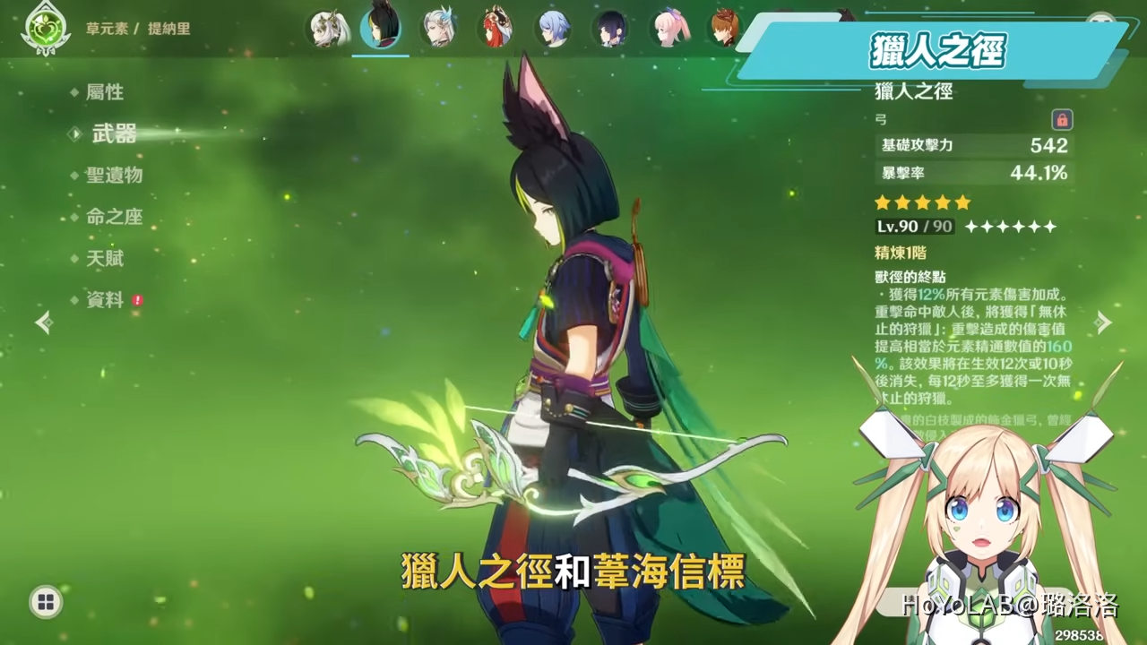 最後就是再分享一些相關的抽取建議,五星角色來說,這些角色都是蒙德的老角色了,而且優菈又是曾經最久沒復刻的辣個女人,結果復刻後真的抽的人又寥寥無幾,所以這個卡池的角色,應該也是會根據玩家對於抽取意願的踴躍程度和營收表現,來決定是否放入集錄祈願。因此這邊的角色主要就是給一些還想擁有的人能蒐集的機會,有需要、有喜歡就抽,都比較屬於XP黨專區了,因為該有的人差不多已經都抽了,而武器的部分洛洛倒是會推薦一下獵人之徑和葦海信標,獵人之徑是提納里的專屬武器,若是在提納里、迪希雅初登場版本之後才入坑的話,獵人之徑和葦海信標可說是被看成近乎絕版的武器,假如提納里還在拿彈弓還是紀行武器的話,很推薦可以趁集錄祈願開放的時候把小提的專武補到,並且獵人之徑還不會幫你跟什麼赤角石潰杵一起放,歪到其他天空系列武器也都還算能用,並且命定值也只有1,不用像武器池最非要吃2次定軌,風險小了不少,而葦海信標則是不論你有沒有迪希雅,這把武器也算是非常泛用的一把暴率雙手劍,不管是迪盧克、嘉明、迪希雅、優菈…大部分的吃攻擊力大劍角色都能用,也能夠很好的顧到暴率面板,傷害也很不錯,並且集錄祈願也是有時間限定的,所以錯過的話也不確定下次還會不會再加入。