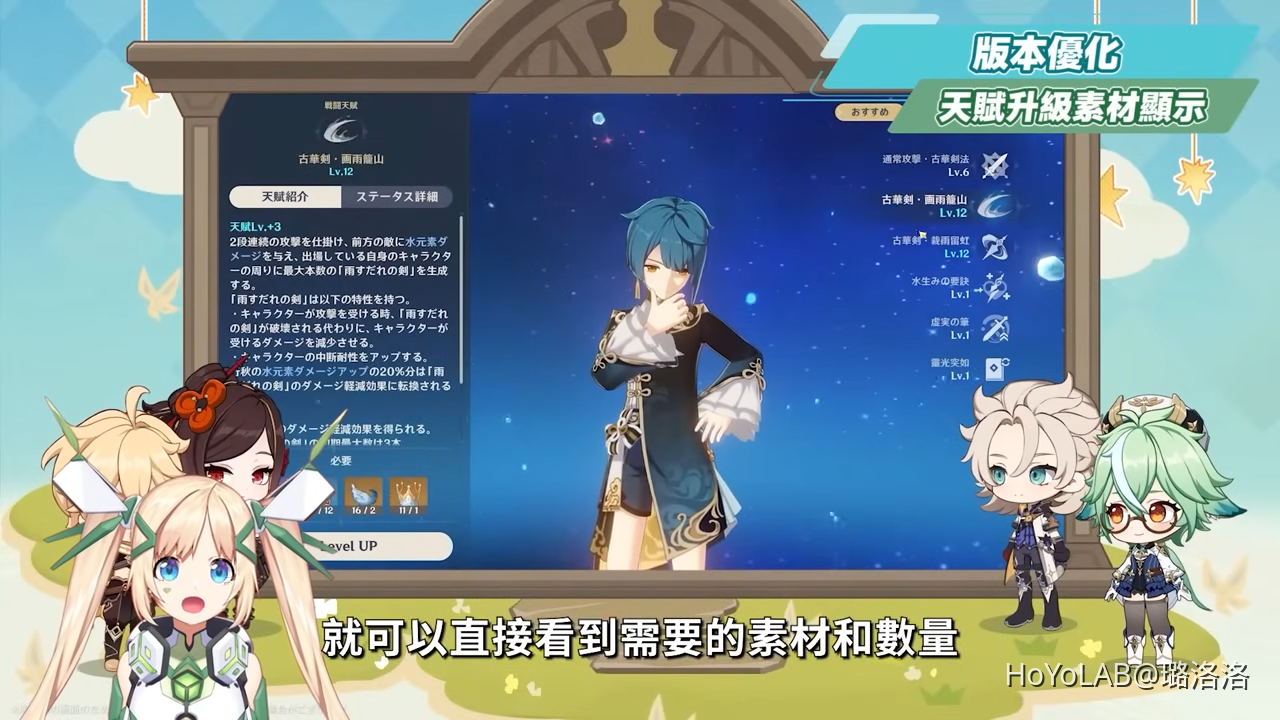 在下一個版本中也會有新的優化,首先是在角色天賦升級的介面,就可以直接看到需要的素材和數量,變得更加直觀。