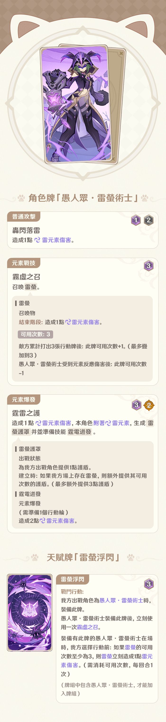 標籤:4.5 Genshin Impact 七聖召喚 卡牌平衡性調整 原神 可控性去危害化式定向爆破 夏洛蒂 對應天賦牌 愚人眾·雷螢術士 抗爭之日·碎夢之時 新增角色牌 更新說明 梅洛彼德堡 流明石觸媒 綺良良 萬世流湧大典 行動牌 遊戲官方公告 那維萊特 黃金劇團的獎賞
