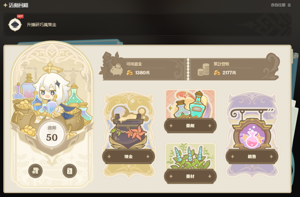 隨著4.5版本新活動「升煉研巧萬策金」上線,戰績工具也將同步更新,更新後可在活動回顧中查看該活動戰績。