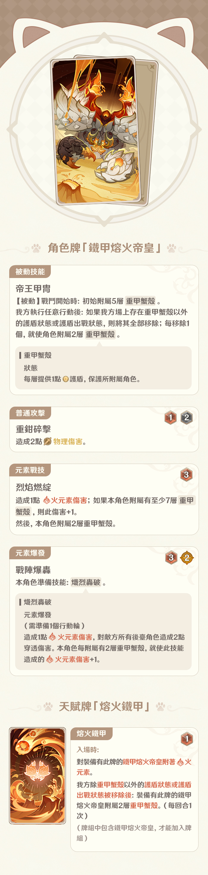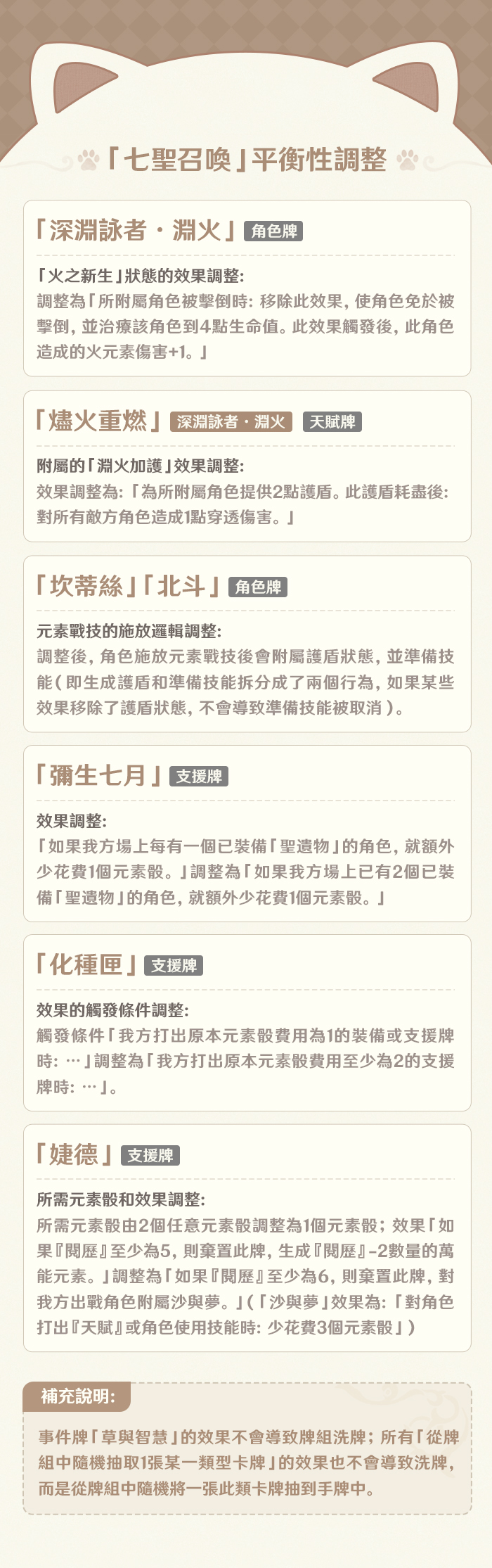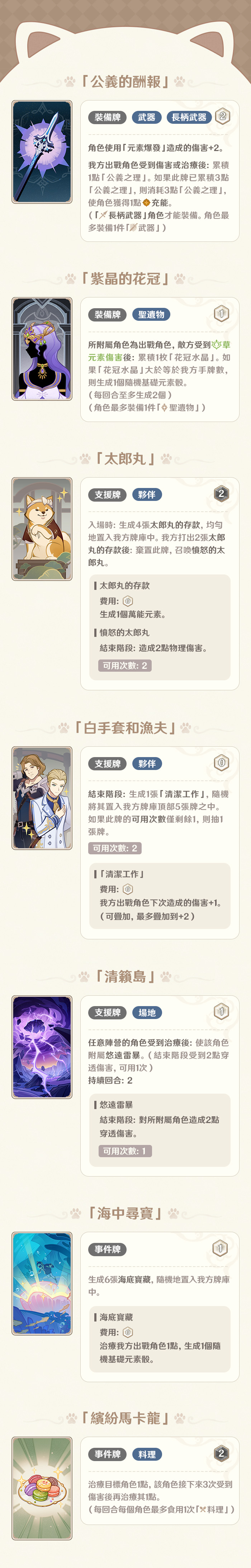 ●開發團隊將持續跟隨旅行者的遊戲體驗,並對卡牌平衡性進行改善調整。卡牌資訊請旅行者以遊戲內正式內容為準。