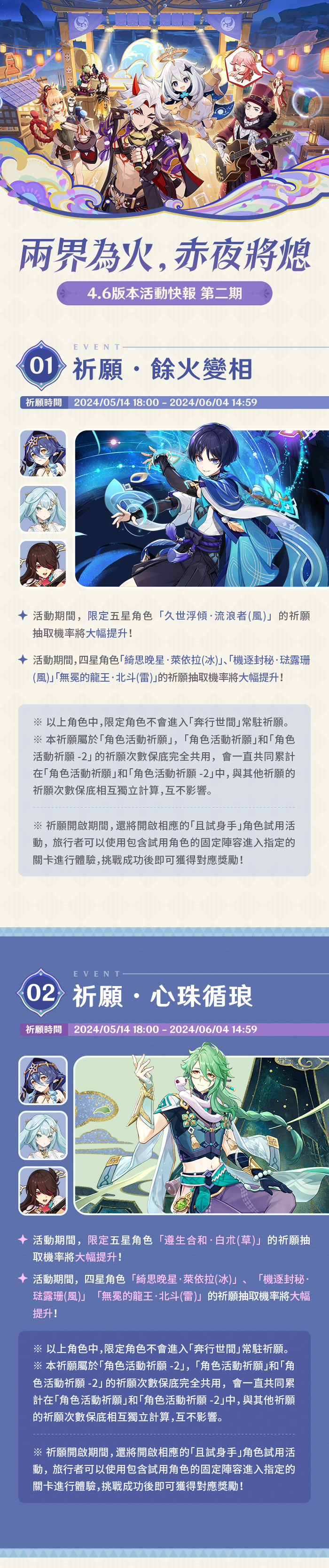 標籤:4.6 Genshin Impact 兩界為火,赤夜將熄 原神 天赋培養素材雙倍掉落 強敵交涉之旅 殊形之龍參尋戰記 活動 活動快報 活動快報第二期 策略追獵挑戰 精通移湧 遊戲官方公告 風行迷蹤·謀策之局