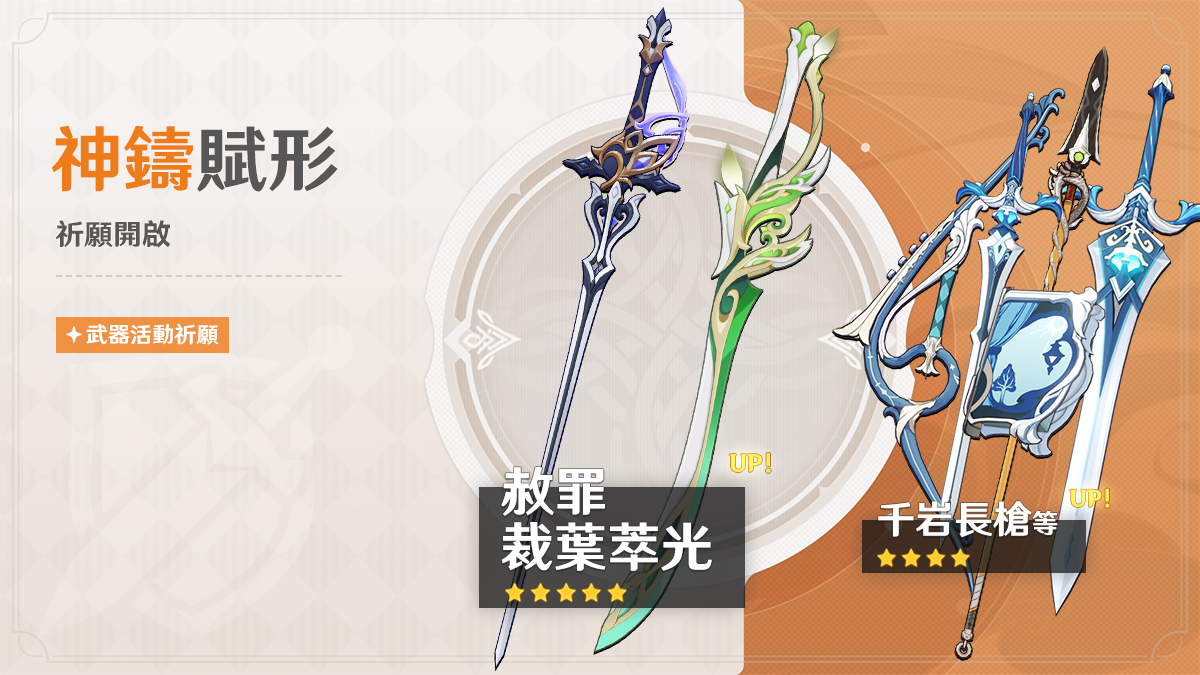 「神鑄賦形」祈願:「單手劍·赦罪」、「單手劍·裁葉萃光」機率UP!