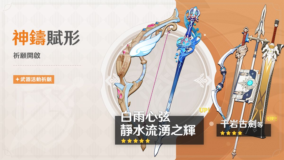 「神鑄賦形」祈願:「弓·白雨心弦」、「單手劍·靜水流湧之輝」機率UP!