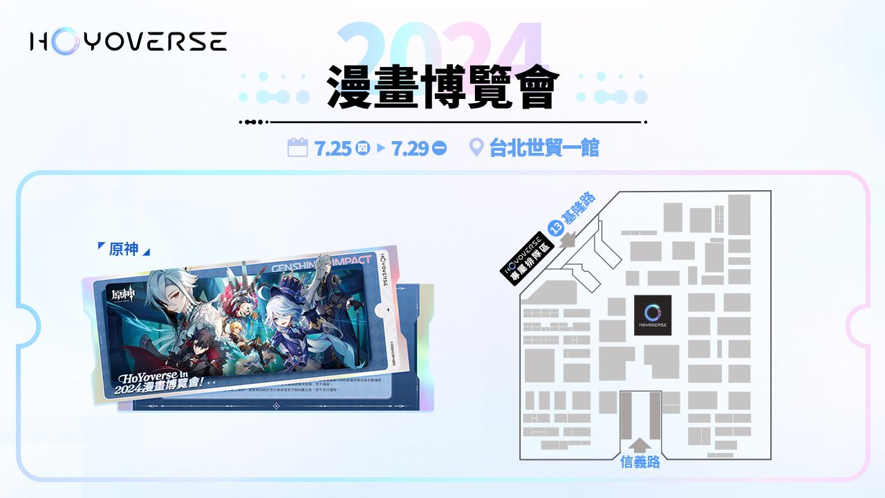 凡購買「2024 漫畫博覽會 × HoYoverse 聯名票」《原神》聯票者,即可在活動期間,由「HoYoverse專屬通道」排隊進場,並在台北世貿一館 13 號入口處驗票後,兌換實體鐳射票。