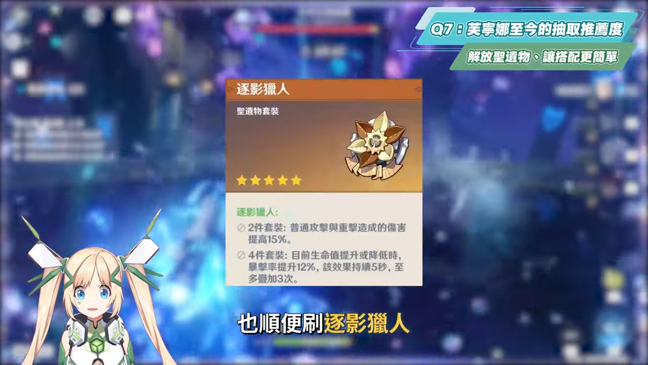 聖遺物如何搭配以及主副屬性選擇,也在先前芙寧娜影片裡面17:36開始的地方查看0命~滿命的搭配方案。洛洛有整理表格,所以一看就很清楚。