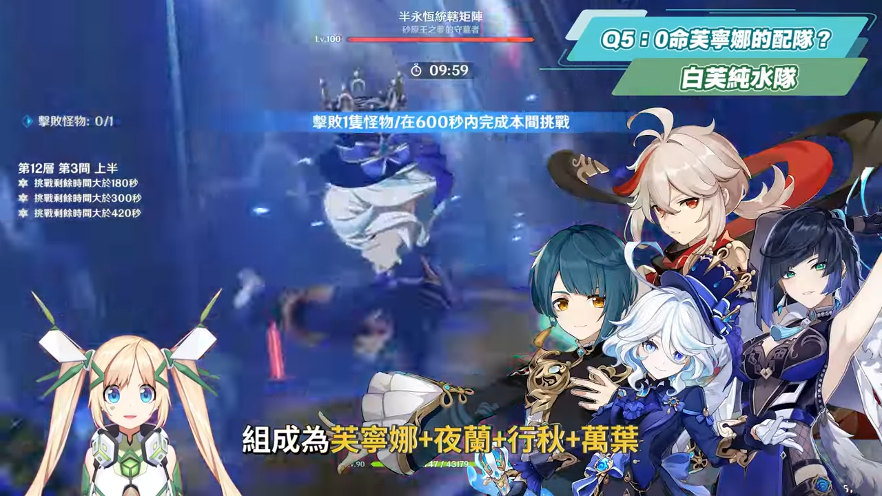 除了0命的配隊比較少之外,滿命芙寧娜的配隊因為比較高成本,而且也比較少人在分享滿命芙寧娜的配隊,這邊洛洛也分享一些滿命白芙適合的配隊。