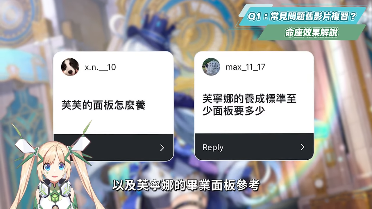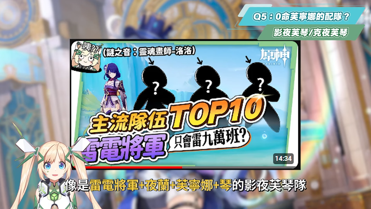 首先要先提供給一些關於芙寧娜基本機制還不熟的玩家一個查找方向,因為有很多的問題其實在第一支影片就有答案了,因此這邊洛洛直接提供時間點,不清楚的話都可以先看過後再回來看這支影片,而老玩家已經知道的話也可以直接跳到下一題。