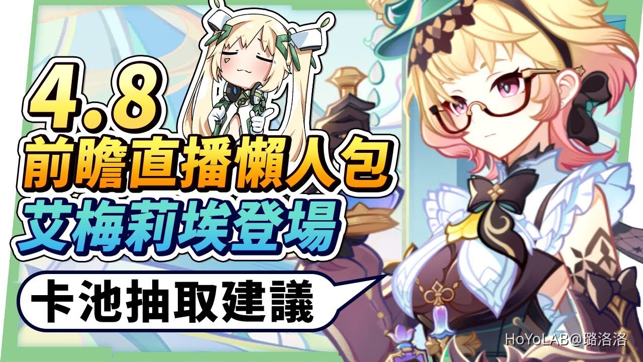 這次要帶來的是《原神》4.8前瞻直播重點懶人包,在上半卡池,將會同時復刻娜維婭和妮露,而下半卡池則是將會實裝全新五星草元素艾梅莉埃、以及復刻夜天后夜蘭,由於《原神》以往都沒有.9版本,因此這一個版本也將會是楓丹版本的最後一個版本,下一個版本也就會開放全新的納塔國度啦!從開服玩到現在的洛洛也不禁覺得時間過得好快啊~而這一版本也多了許多新優化,趁著納塔到來前,若是不清楚4.8卡池如何抽取,與相關的復刻角色抽取建議,或是想知道新常駐玩法的詳細機制,洛洛也會和卡池資訊、新地圖、新武器、版本活動、系統優化等內容一起整理在稍後的影片中,並補充直播中沒有提到的重點唷!