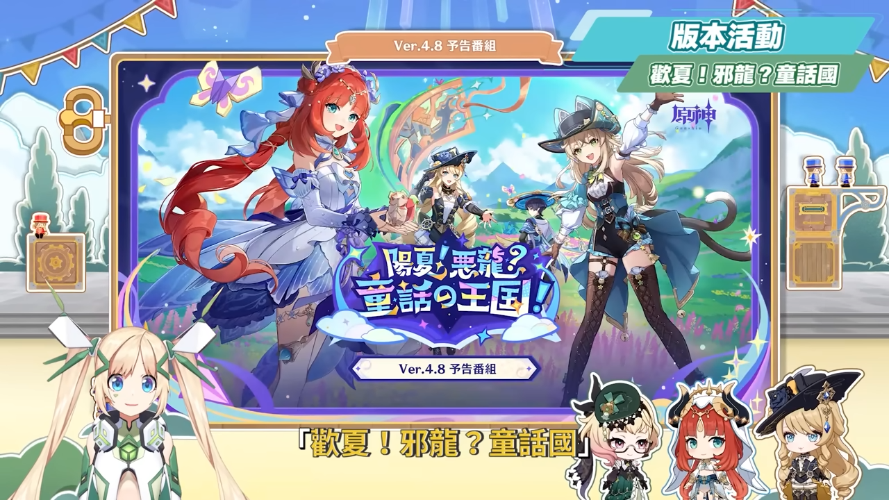 這次的版本大活動名稱為「歡夏!邪龍?童話國」,我們需要透過完成活動,收集特定道具「歡升飛羽」和從「童話寶箱」裡面獲得的「悠樂片段」,藉此來拿到原石和素材等獎勵,並且也可以免費再獲得一隻綺良良,以及綺良良的免費全新時裝。