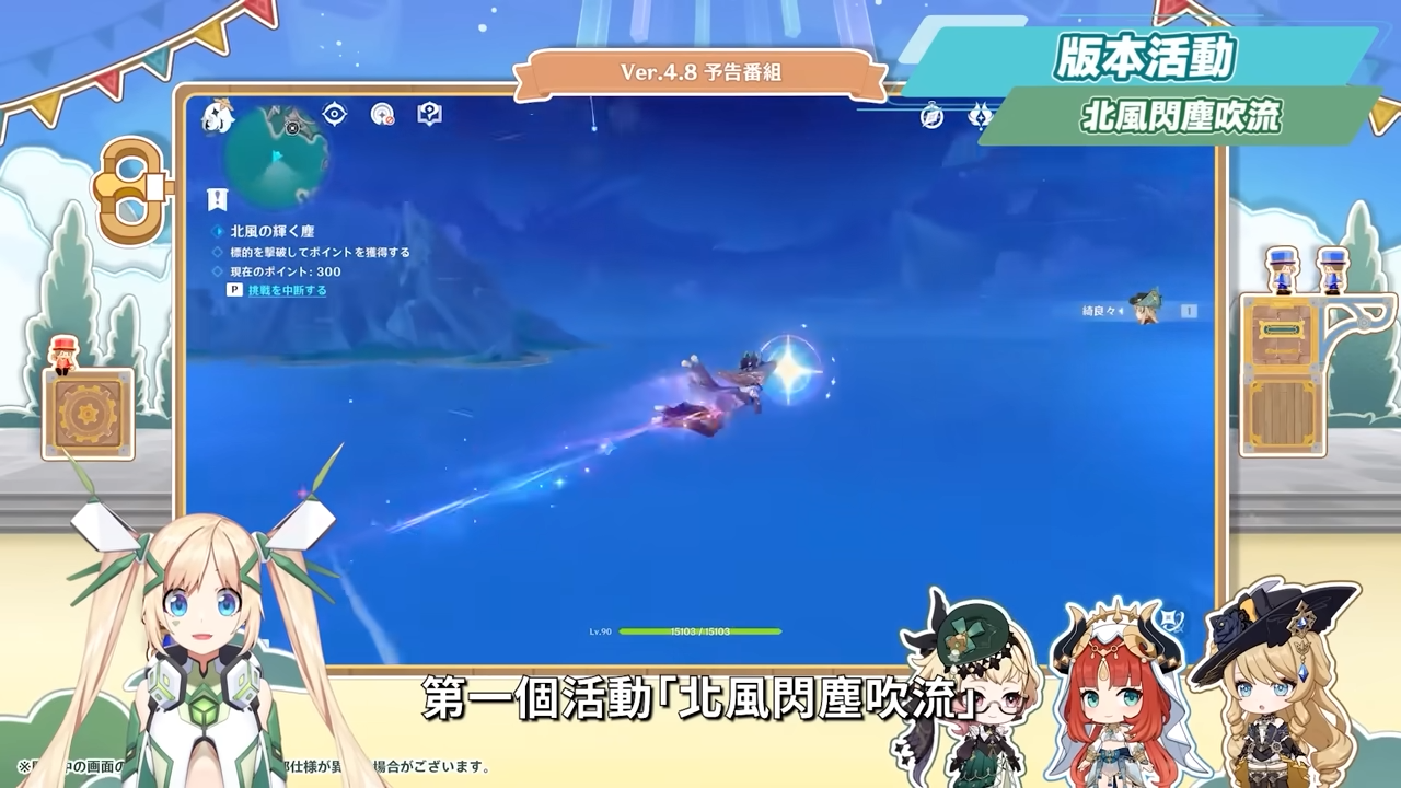 第一個活動「北風閃塵吹流」是需要搭配氣流前進的一個小遊戲,移動的過程中還需要射擊漂浮的標靶來獲得積分,射中不同的標靶也會產生不同的效果。