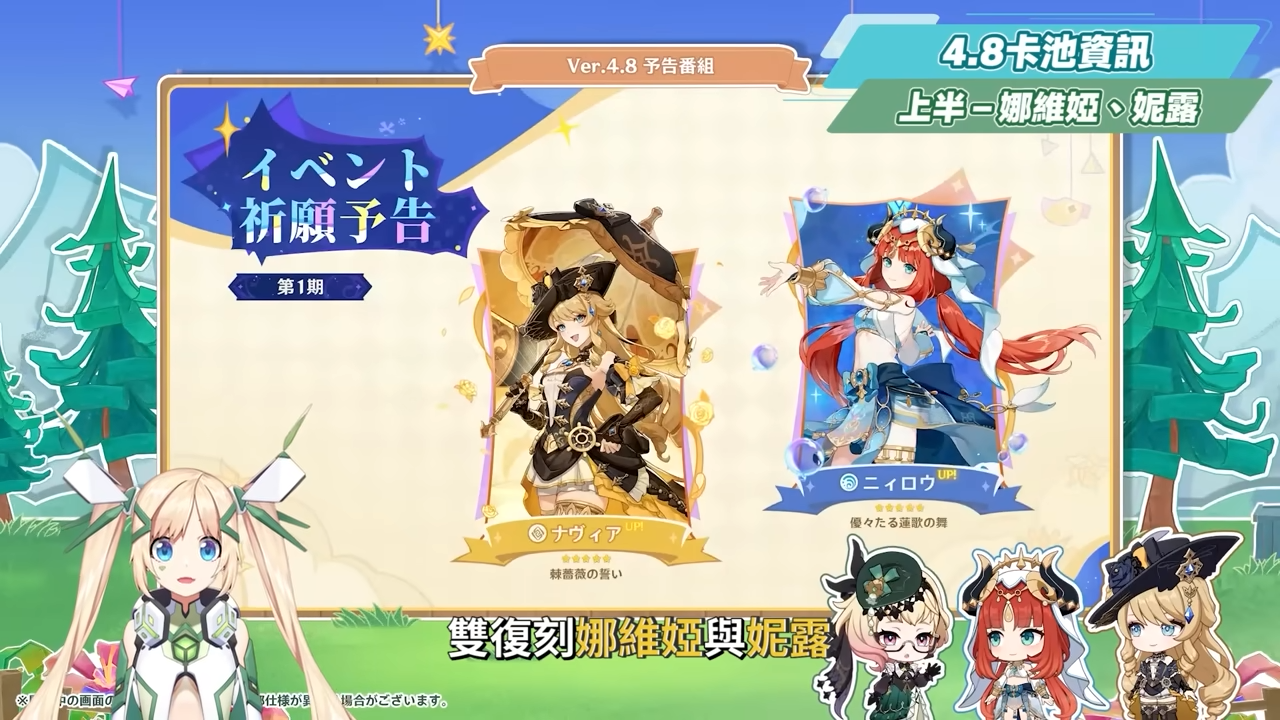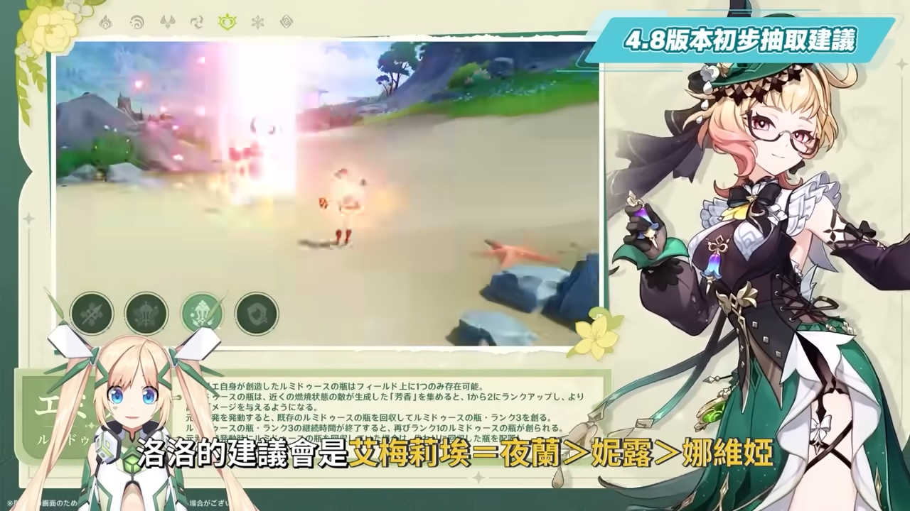 【原神】4.8前瞻懶人包🎯▸艾梅莉埃登場! 妮露/娜維婭/夜蘭復刻!卡池抽取建議?全新常駐玩法「繪想遊跡」?納塔爆料3名新角色!版本更新&優化! ▹璐洛洛◃