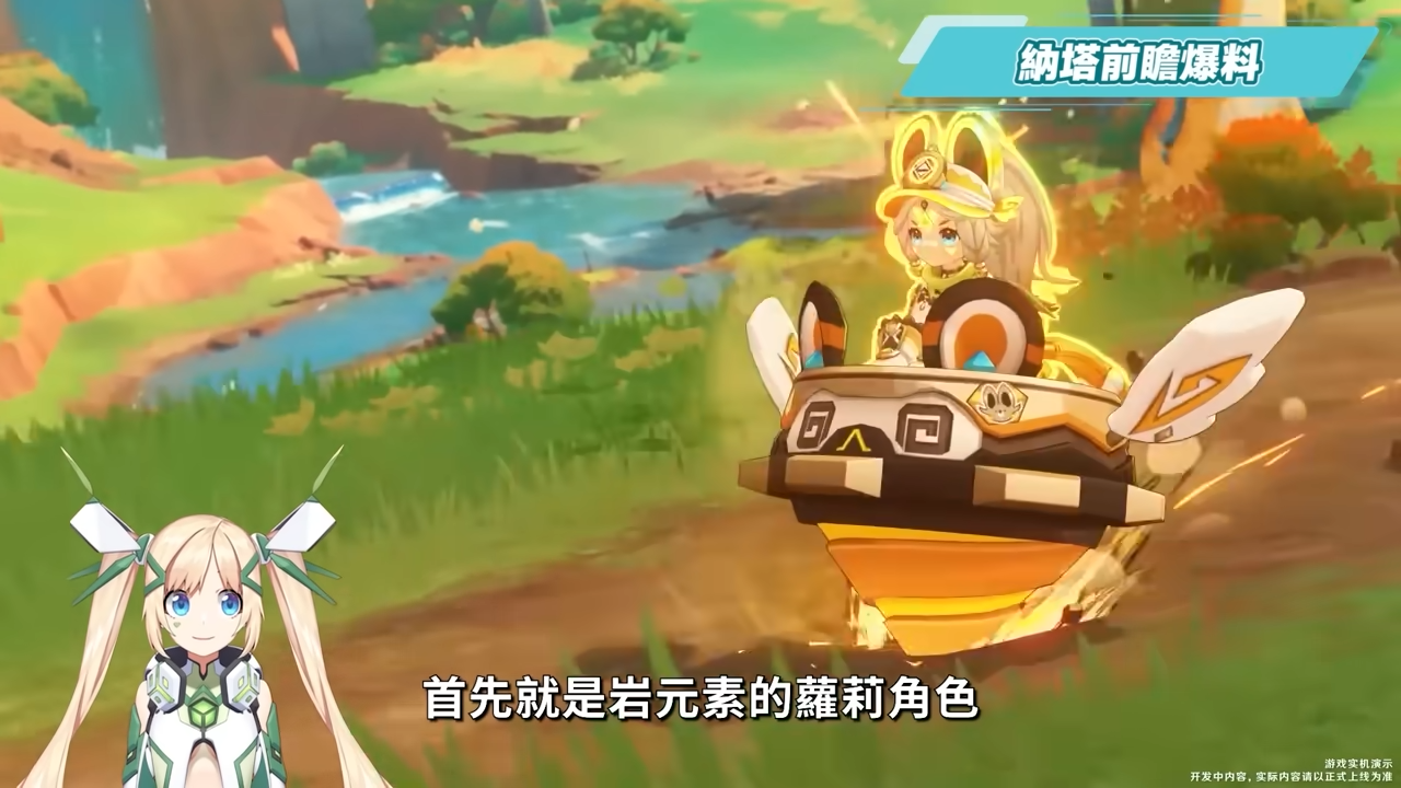 最後就是納塔版本的前瞻爆料,這次的PV中出現了三名新角色,並且也可以透過停幀來發現到他們的神之眼,首先就是岩元素的蘿莉角色,可以坐在一個車車上面來登山和快速移動,再來是一個水元素的鯊魚妹,能夠腳踏魚上在水面上快速移動,最後就是一個很帥氣的草元素黑髮少年,從畫面中也可以發現他是大劍角色。而再對比之前4.7版本的納塔前瞻影片中,我們可以發現到,之前的爆料影片也是出現三隻不同元素的龍,正好也是岩元素、水元素和草元素的龍,再回來看這次的三位新角色也正好都是對應的元素,而且都還有比較特殊的能力,洛洛在猜或許納塔這個國度中有著許多元素的龍,而這些龍身上的特殊能力都可能會被對應元素的角色所發揮,所以岩元素的蘿莉可以爬山和開車、水元素的鯊魚妹可以在水上行走等等。不知道大家對哪一個新角色最有興趣呢?