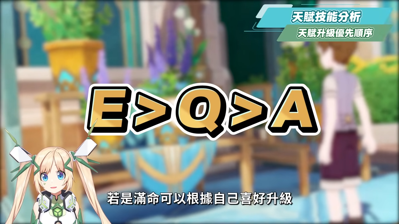 艾梅莉埃的天賦升級優先順序方面,優先升級核心的E元素戰技,其次是Q元素爆發,普攻可升可不升。若是滿命可以根據自己喜好升級,不過即便升上去也對傷害影響不大就是。