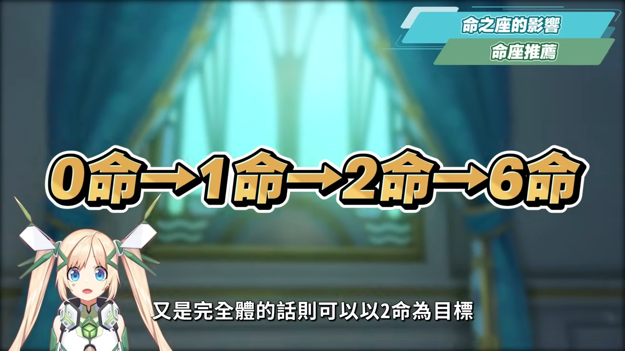 命座效果推薦,0命的艾梅莉埃機制上算是相當完整,其實和0命的八重神子感覺差不多,1命屬於是偏質變的機制+傷害命座,2命相當於自帶一套「深林」4件套,並且艾梅莉埃的隊伍比較多都是艾梅莉埃一個單草而已,所以2命後直接穿「遐思」4件套也等於是綜合2套聖遺物的效果,讓傷害更高,因此從2命到6命也主要都是提高傷害數值上限的相關效果,其中2命和6命是最為明顯的,因此若是從機制上考慮的話,可以以1命為主,要一個比較符合經濟效益又是完全體的話則可以以2命為目標,剩下就是真愛大課長的6命完全體。