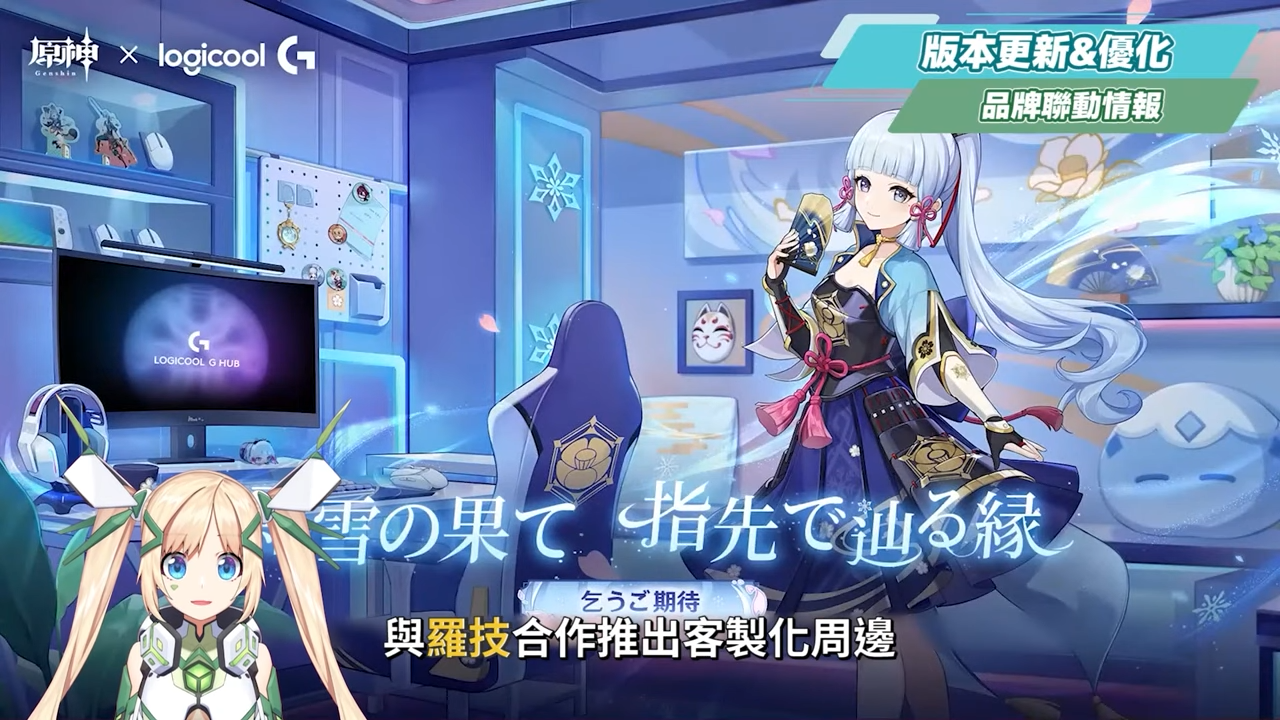 官方也宣布將與羅技合作推出客製化周邊,這次的主題角色為神里綾華,畫面中也可以看到有靈華的電競椅,若是想知道有哪些聯名周邊的話,屆時也可以注意陸版官方帳號。