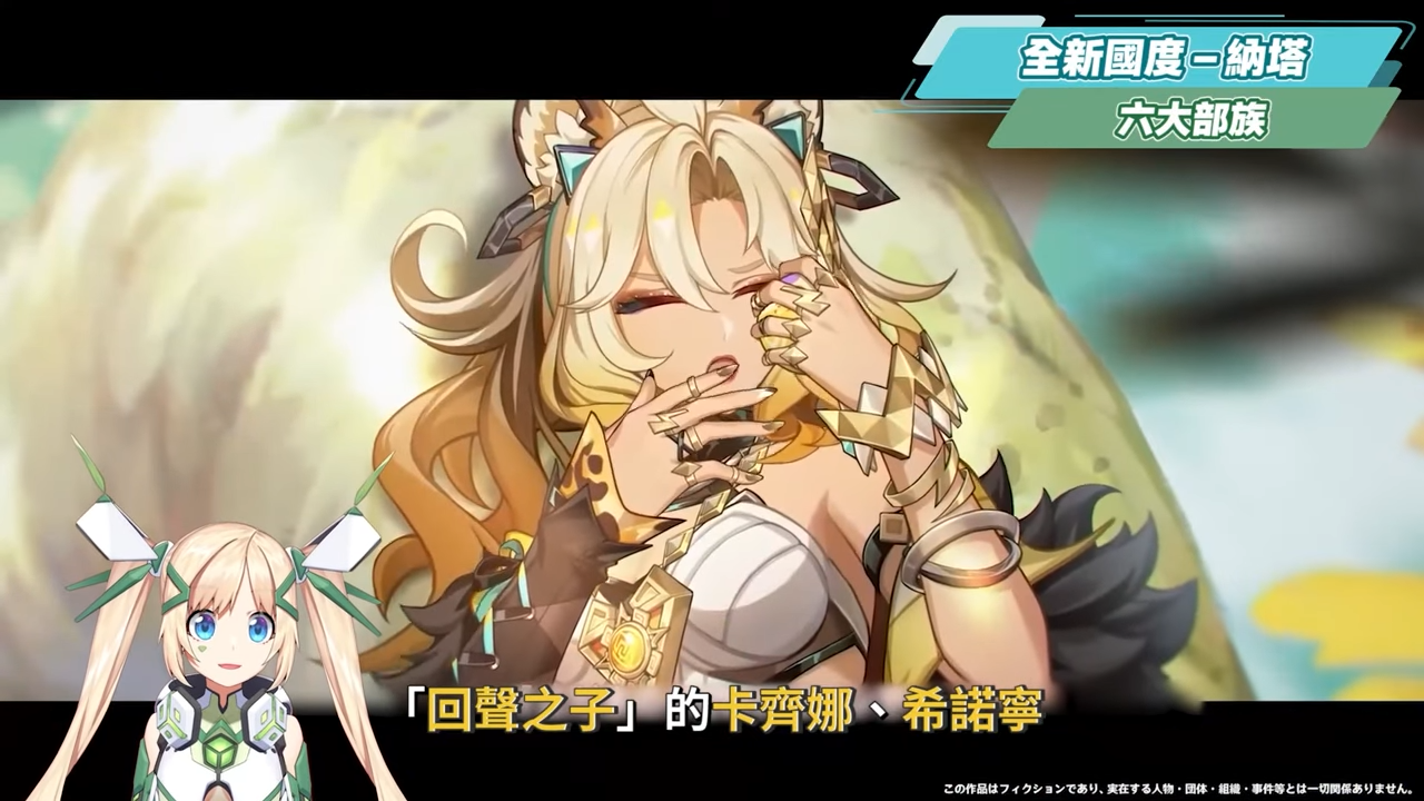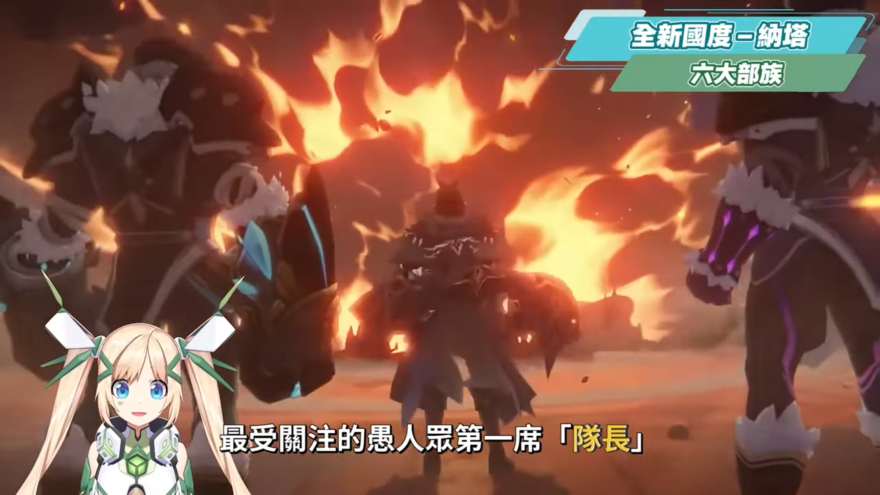 在納塔這塊區域中,目前共有六大部族,各個部族都會有一些身懷絕技的勇士,包含這次版本新出的三名角色,也都來自不同的部族,並且一同參加這次在「聖火競技場」上舉辦的「歸火聖夜巡禮」,角逐最高榮譽。隨著主線推進,我們也會再遇到來自「流泉之眾」的瑪拉妮、「懸木人」的基尼奇,「花羽會」中非常有名的調停人恰斯卡、