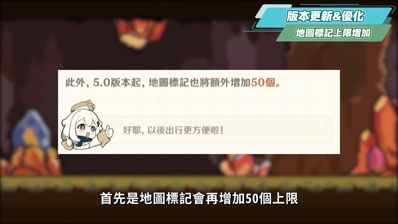最後也補充一些前瞻直播上沒說但是5.0版本後會實裝的改動,首先是地圖標記會再增加50個上限。