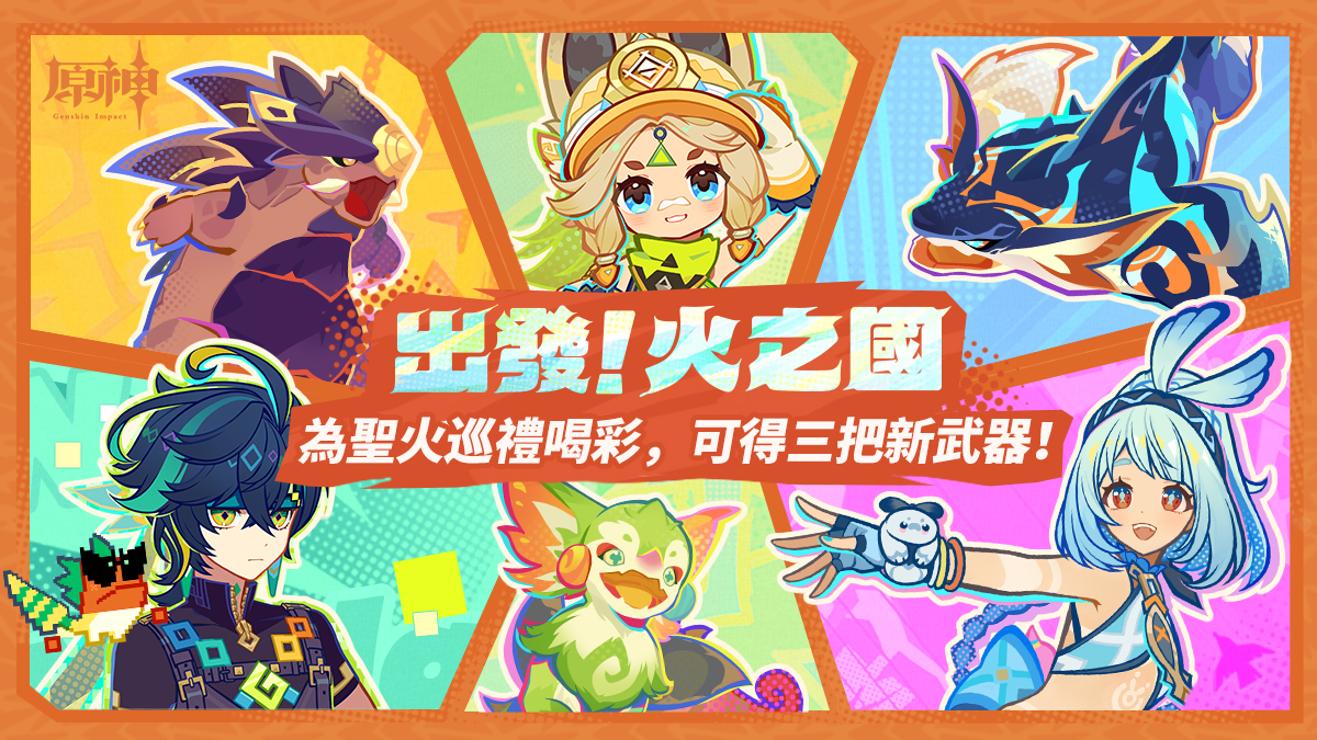 活動期間,可以體驗到納塔新角色和新風光,瞭解更多納塔的故事。還可以登入為聖火巡禮喝彩,獲得三把鍛造四星武器及突破素材。