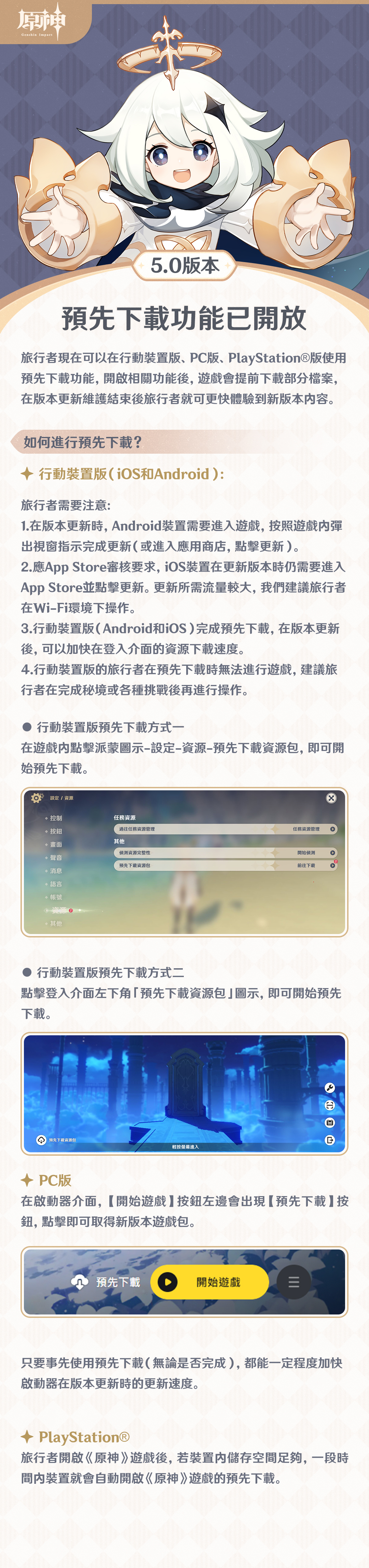 若旅行者的裝置儲存空間較為緊繃,可以為遊戲檔案預留空間(約16-23GB),等待至版本更新維護期間或之後直接更新。