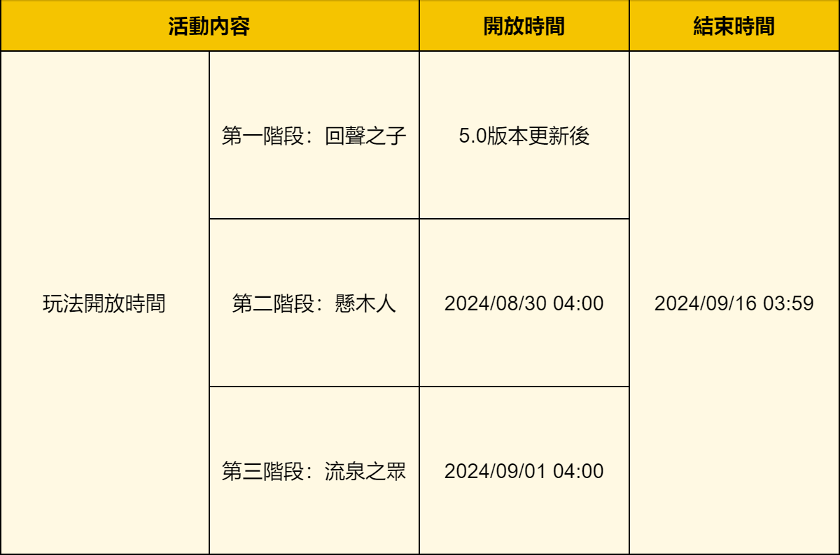 ※未完成邀請時,活動頁面將持續開放至6.0版本更新前;6.0版本更新後,活動頁面將關閉,屆時旅行者將無法透過活動頁面使用「快速體驗」功能,但仍然可以在推進「榮花與炎日之途」的過程中邀請「斑金礦樸·卡齊娜(岩)」。