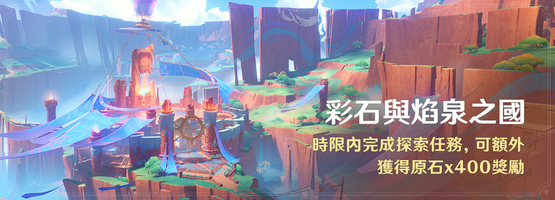 「彩石與焰泉之國」時限內完成探索任務,可額外獲得原石x400獎勵